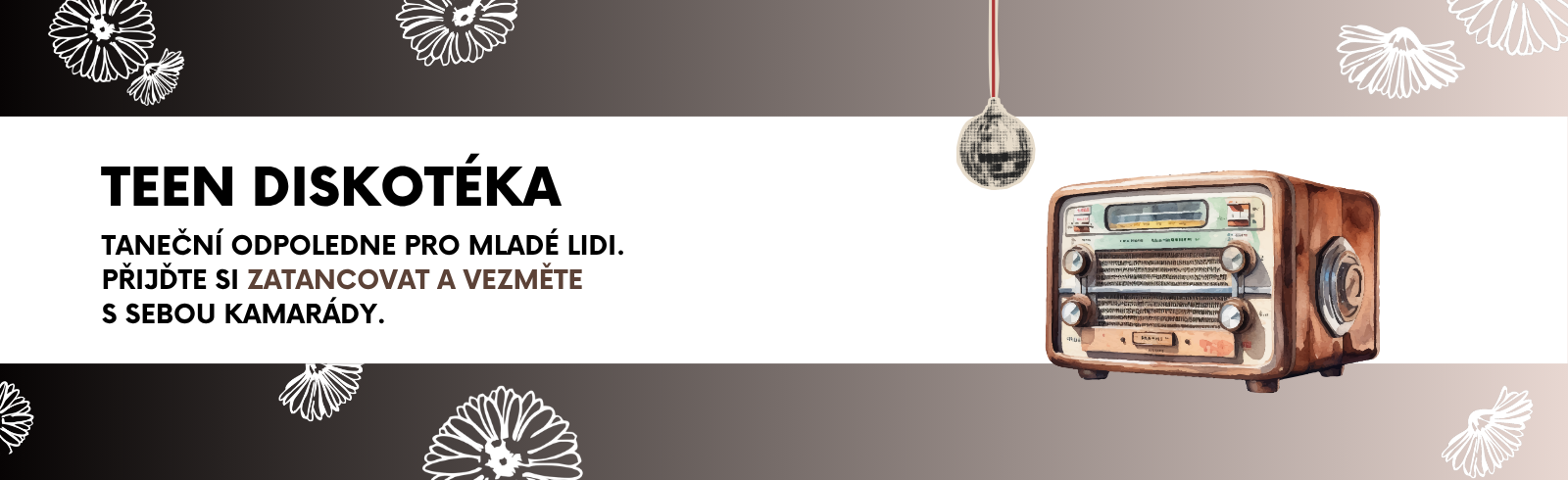 Disko párty určená dětem od 10 let, na které mohou zažít atmosféru opravdové diskotéky, kde hudbu budou míchat dýdžejové (z našeho dýdžej kroužku), tanec podpoří profi tanečnice, u vstupu dostanou pásku na ruku a uvnitř pro ně bude kromě taneční a světelné disko atmosféry čekat i speciálně namíchaný dětský koktejl.