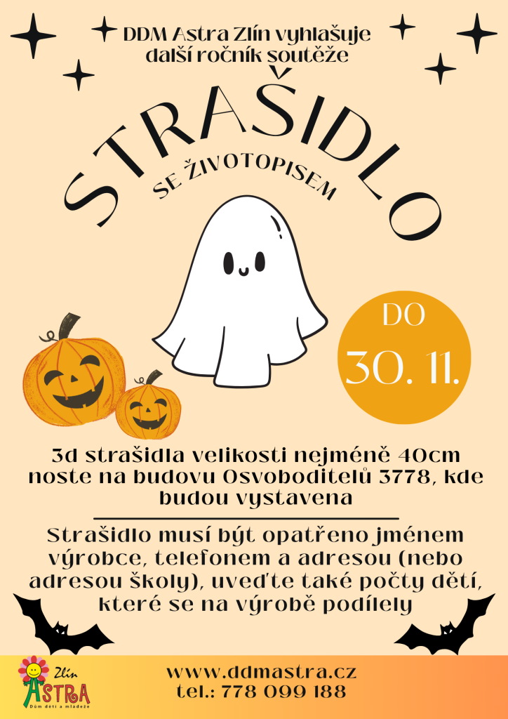 Vyrobená strašidla noste na budovu DDM Astra Zín na ul. Osvoboditelů 3778 do 30.11.2025, kde budou také vystaveny.