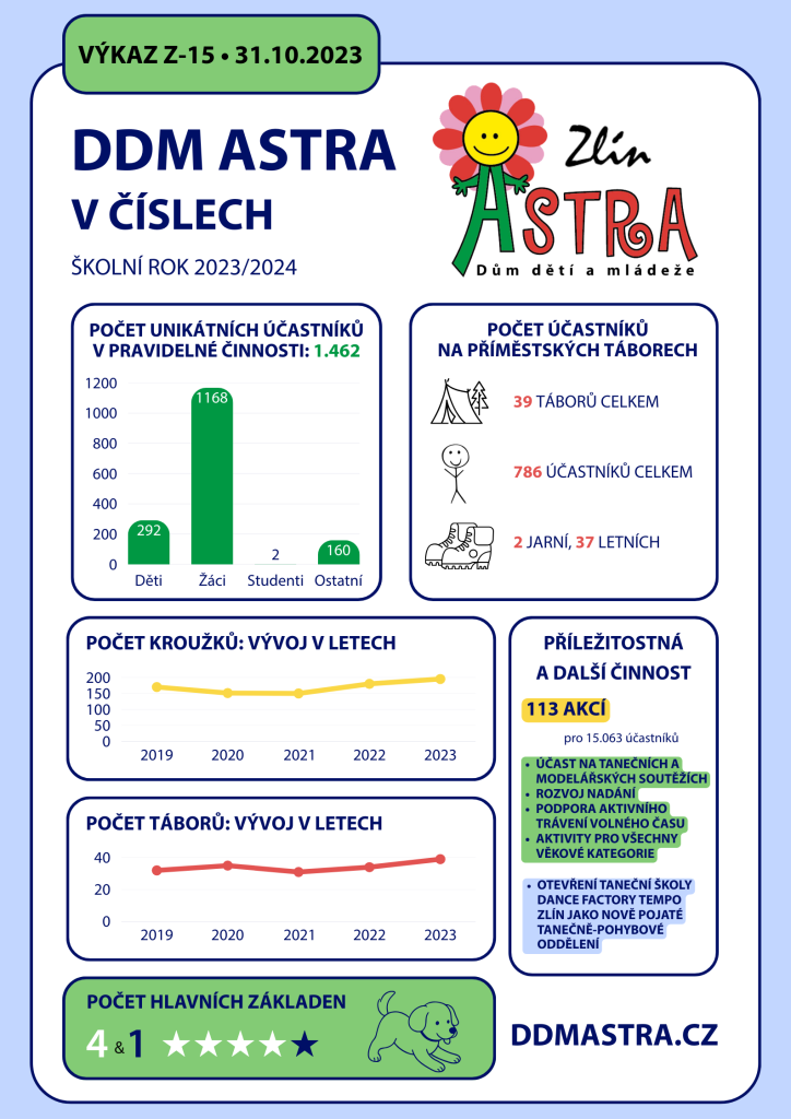 DDM ASTRA ZLÍN VE ŠKOLNÍM ROCE 2023/2024: STRUČNÝ PŘEHLED ČINNOSTI