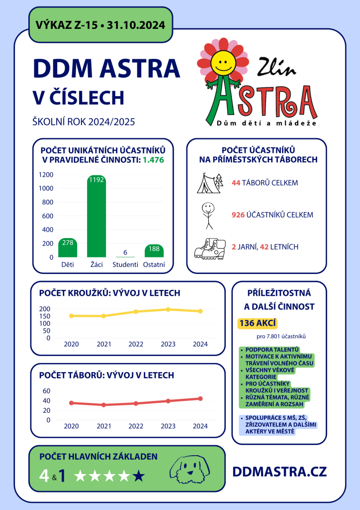 DDM ASTRA ZLÍN VE ŠKOLNÍM ROCE 2024/2025: STRUČNÝ PŘEHLED ČINNOSTI