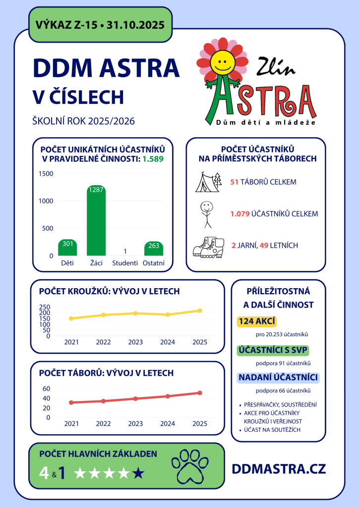 DDM ASTRA ZLÍN VE ŠKOLNÍM ROCE 2025/2026: STRUČNÝ PŘEHLED ČINNOSTI